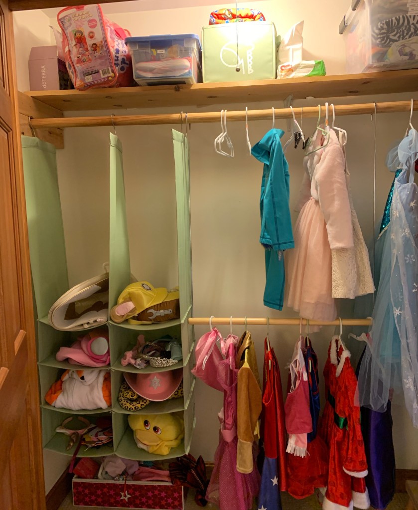 We had so much fun reimagining this closet for dress up! The best part was the enthusiastic approval of my clients daughter 🥰 Double hanging shelves helped make this an accessible closet for her 🤩👧