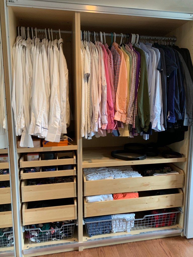 Sorting by color & like items is immensely satisfying! This client can now see all of his shirts at a glance – and there’s space for more! 🛍🤩